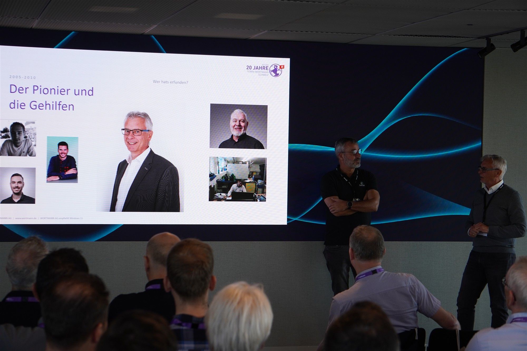 Wortmann, und der Schweizer Country Manager Sascha Wiebe, seit über zwei Jahrzehnten im Unternehmen, begrüssten die Gäste. Diese nahm Wiebe dann gemeinsam mit Axel Lehmkuhl aus dem Vertriebs-Team von Terra Wortmann mit auf eine Reise in die Vergangenheit. Launig erinnerten sie an die Anfänge im Jahr 2005, als der Schweizer Ableger in einem Keller in Kriens startete. Alte Fotos, Anekdoten aus der Aufbauzeit und Geschichten langjähriger Partner und Wegbegleiter erinnerten an die vergangenen 20 Jahre, wobei sowohl Wiebe wie auch Lehmkuhl betonten, dass Wortmann ohne seine Partner "nichts wäre" und man immer im Sinne der Partner arbeite – auch wenn auf anderem Wege vielleicht das lukrativere Geschäft möglich wäre.