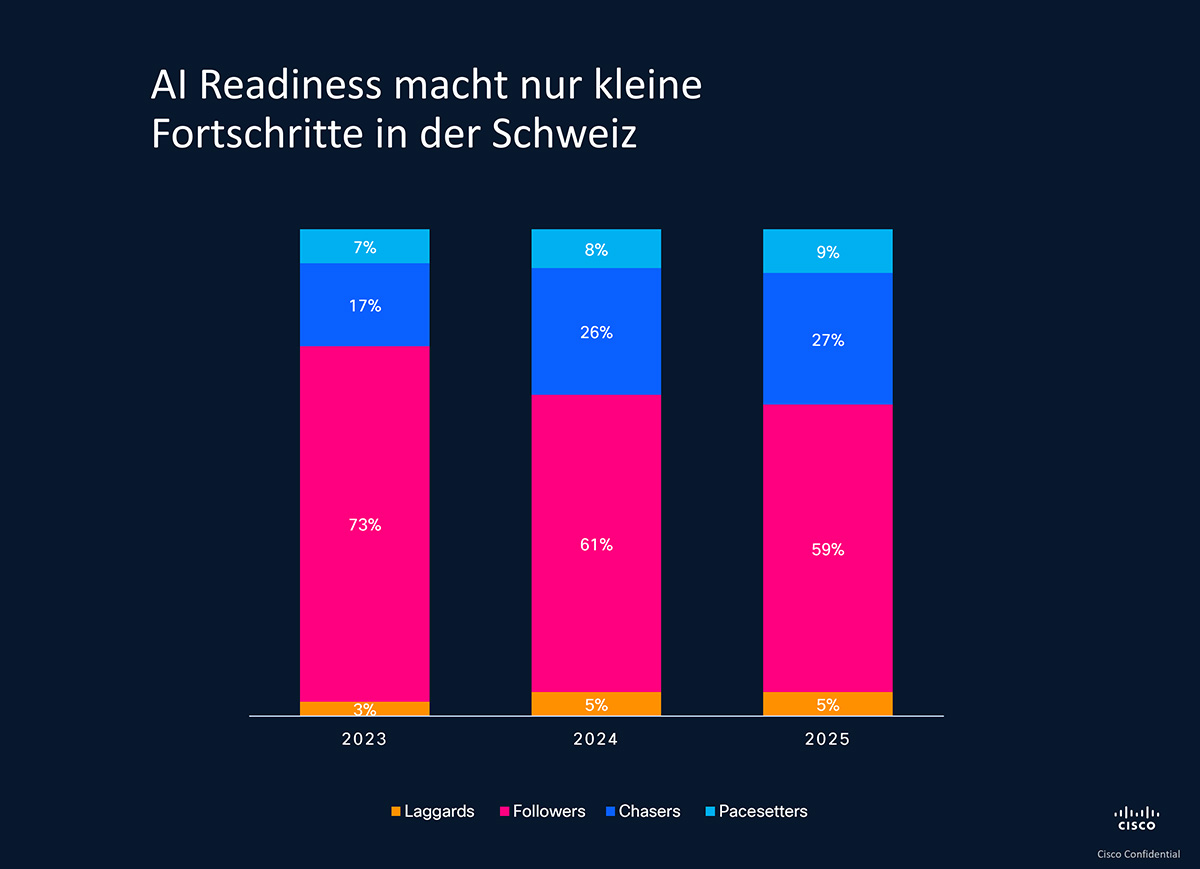 Cisco schliesst daraus, dass KI auch in der Schweiz nicht mehr als Zukunftsprojekt betrachtet wird, sondern als Wettbewerbsfaktor gilt.