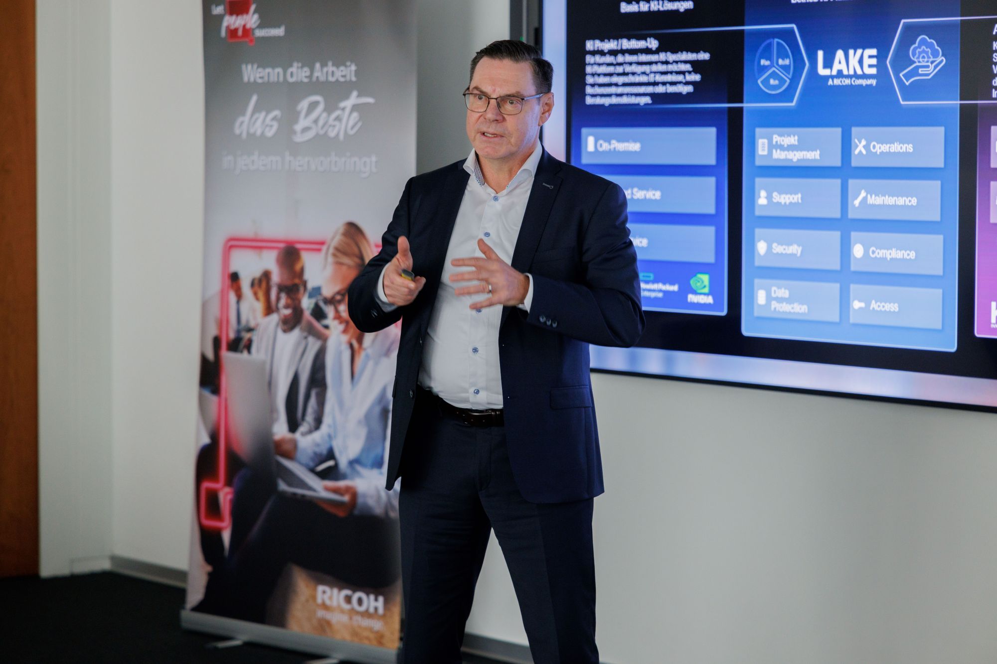 Ricoh und Lake mit einer durchgängigen Digitalisierungsstrategie adressieren können, auch mit und dank KI. Der Gedanke dieser durchgängigen, durch Services definierten Digitalisierungsstrategie zeigt sich etwa in den neuen Geräten der SD-Serie. Diese sollen dank der Kombination eines Printers, eines Hochleistungs-Scanners, KI und Dokument-Management-Software nahtlose Prozesse ermöglichen.