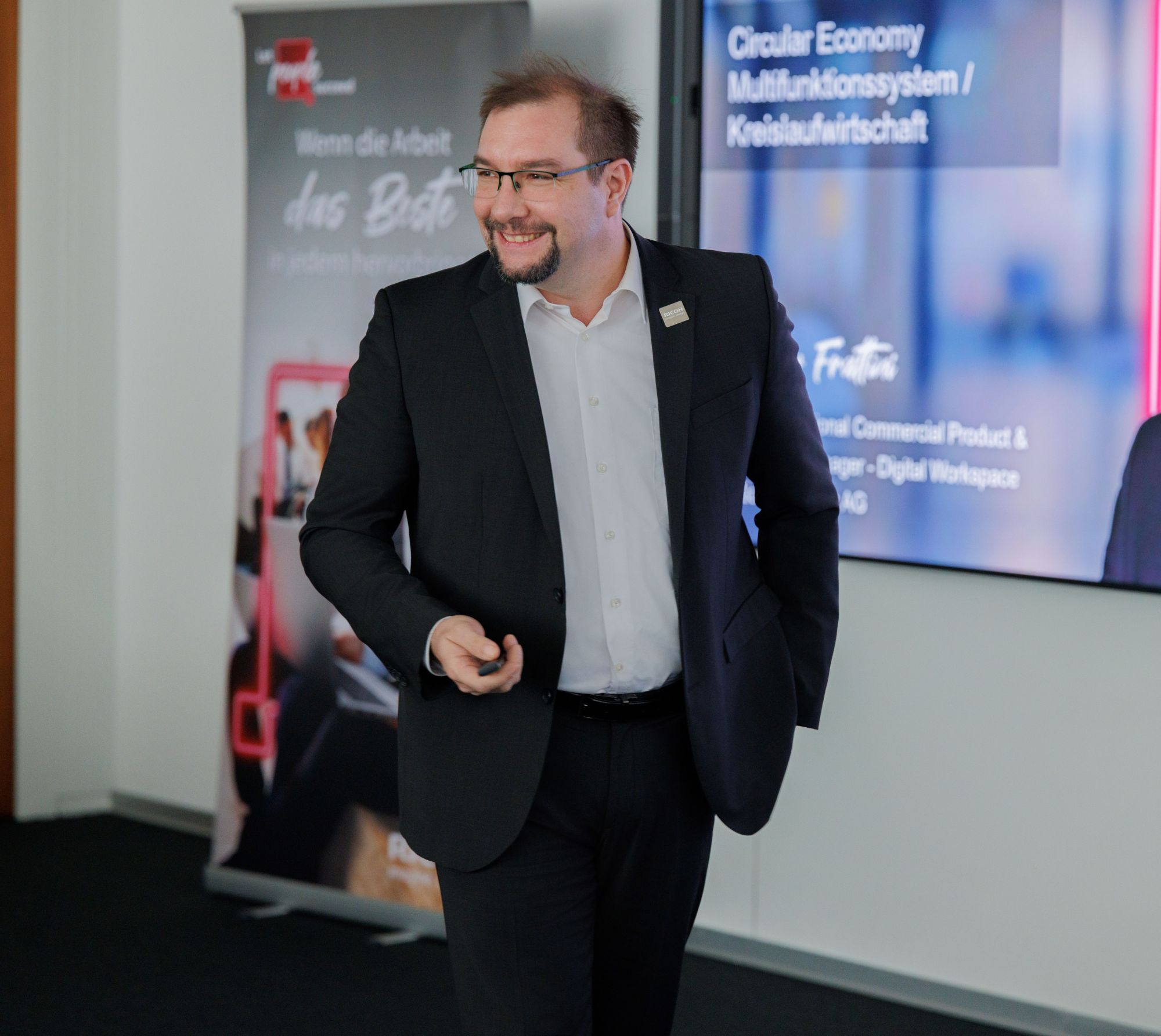 Ricoh unter anderem auf einen Recycling- und Refurbishing-Ansatz. Mit den Geräten der CE-Serie (CE steht für Circular Economy bzw. Kreislaufwirtschaft) adressiert man etwa die Vorgaben einer EU-Verordnung (Ecodesign for Sustainable Products Regulation, ESPR). 80 Prozent der Komponenten in diesen Geräten kommen laut Ricoh aus ausgedienten Geräten, der CO2-Fussabdruck reduziere sich damit um 50 Prozent gegenüber normalen Neugeräten, wie Senior Product- und Service-Manager Dario Frattini im Rahmen der Veranstaltung ausführte.