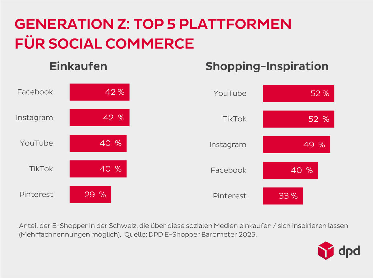 Das Einkaufsverhalten der jungen Erwachsenen im Internet unterscheidet sich deutlich von dem anderer Altersgruppen, wie eine Umfrage des Paketdienstleisters DPD zeigt. Demnach kauft sie gerne direkt in den sozialen Medien, verkauft auf C2C-Plattformen, erwartet von den Händlern KI-Tools und nutzt Community-Funktionen. Aber primär greift die Generation Z häufiger online zu: 82 Online-Käufe pro Jahr tätigen die 18- bis 27-Jährigen laut DPD in der Schweiz durchschnittlich. Das sind 44 Prozent mehr als alle Altersgruppen zwischen 18 und 70 Jahren. Diese kaufen durchschnittlich nur 57-mal im Internet ein. Die Generation Z übertrifft die älteren Semester aber auch beim Verkaufen übers Internet: Über 90 Prozent der jungen Erwachsenen sind auf Plattformen aktiv, auf denen Privatpersonen insbesondere Secondhand-Produkte handeln.