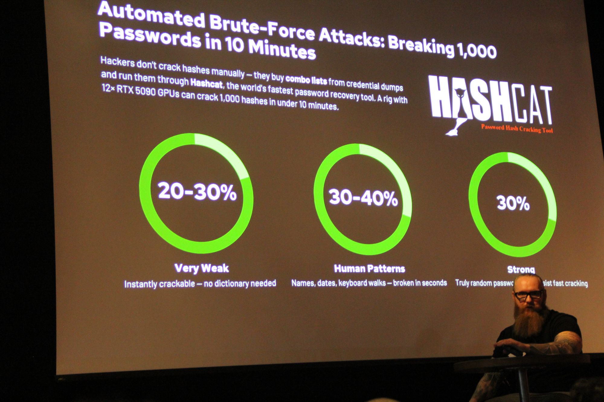 Für einen Perspektivenwechsel sorgte anschliessend der Gastreferent Fabian Brust. Der ehemalige Kriminaloberkommissar führte das Publikum anhand realer Fälle durch die Welt der Cyberkriminalität. In seinem Vortrag zeigte er unter anderem, wie Angreifer im Darknet mit gestohlenen Zugangsdaten handeln, wie Accounts kompromittiert werden und welche Methoden Hacker einsetzen, um an Passwörter oder Profile zu gelangen. Dabei erläuterte er auch typische Vorgehensweisen von Cyberkriminellen und deren Geschäftsmodelle.