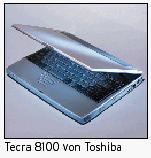 n Tecra 8100-Serie: 500 oder 600 MHz PIII, 100 MHz Front Side Bus und Speedstep-Technologie (600 MHz), 64 MB RAM, 5,6 GB HD, austasuchbares Diskettenlaufwerk oder 24-fach CD-ROM, integriertes Modem, 13,3 oder 14,1 Zoll TFT, modulare Dockingmöglichkeiten. Mit PIII 500 MHz und 13,3 Zoll TFT ab sofort lieferbar, Fr. 4990, identisches Modell mit 14,1 Zoll TFT ab sofort lieferbar, Fr. 6790. Highend-Modell mit 600 MHz PIII ab März lieferbar, Fr. 7990. (mh)