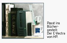 Hewlett-Packard Europe in Grenoble, bei ihrem Besuch in Thalwil gegenüber IT Reseller. In der Tat: Ausser der abschliessbaren Klappe auf der Rückseite und der sehr kompakten Grösse entspricht der e-Vectra dem herkömmlichen PC.