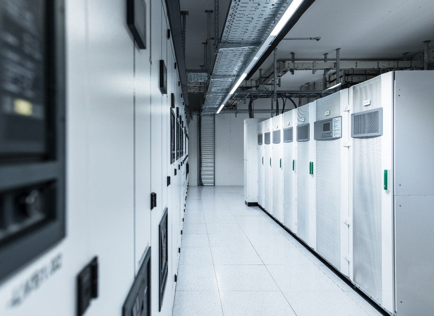 Das Rechenzentrum im Hub:Biel, für das die Summe von 40 Millionen Franken investiert worden ist, bietet auf der gesamten Nutzfläche von 3000 Quadratmetern eine redundant ausgelegt Stromversorgung, Glasfaseranbindung sowie Kühlsysteme und Klimatisierung. Dazu werden für High Performance Computing Energiedichten von 15 bis 20 kW pro Rack bereitgestellt, während in herkömmlichen Rechenzentren 2 kW üblich seien. Die hohe Energieeffizienz habe man aus einer Kombination von Präzisionskühlung, einer neuartigen unterbrechungsfreien Stromversorgung (USV) sowie einem systematischen Energiemanagement erzielen können, heisst es weiter. Bei der USV vom Hersteller Schneider Electric kommen Llithium-Ionnen-Batterien zum Einsatz, die einen Wirkungsgrad von 98 Prozent bieten sollen. Unter dem Strich könne man so einen Power-Usage-Efficiency-Wert von 1,25 erzielen, was sich auf Kundenseite direkt auf der Stromrechnung bemerkbar machen soll.