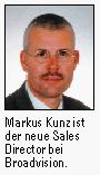 Ariel Lüdi, Broadvision Vizepräsident und verantwortlich für Süd- und Zentraleuropa, rekrutiert seine Leute gerne bei den Datenbänklern, war er doch selbst sieben Jahre lang bei Oracle Schweiz. Der neueste Zuzug bei Broadvision Schweiz ist Markus Kunz als neuer Sales Director.