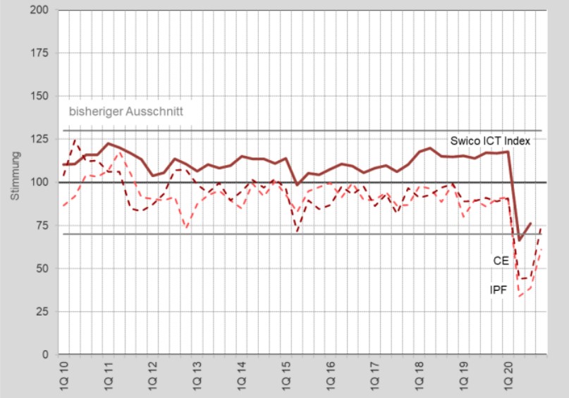 Swico ICT Index vom Juni 2020 zeigt auf, dass die Schweizer ICT-Branche insgesamt zuversichtlich auf das kommende Quartal schaut. Gleichzeitig bleibt die Versunsicherung angesichts der Entwicklungen im Zusammenhang mit der Coronakrise gross. Die Branche kämpfe seit dem Lockdown weiterhin mit erschwerter Kundenakquise, Projektverzögerungen und -stopps und der nach wie vor herrschenden geringeren Nachfrage, so