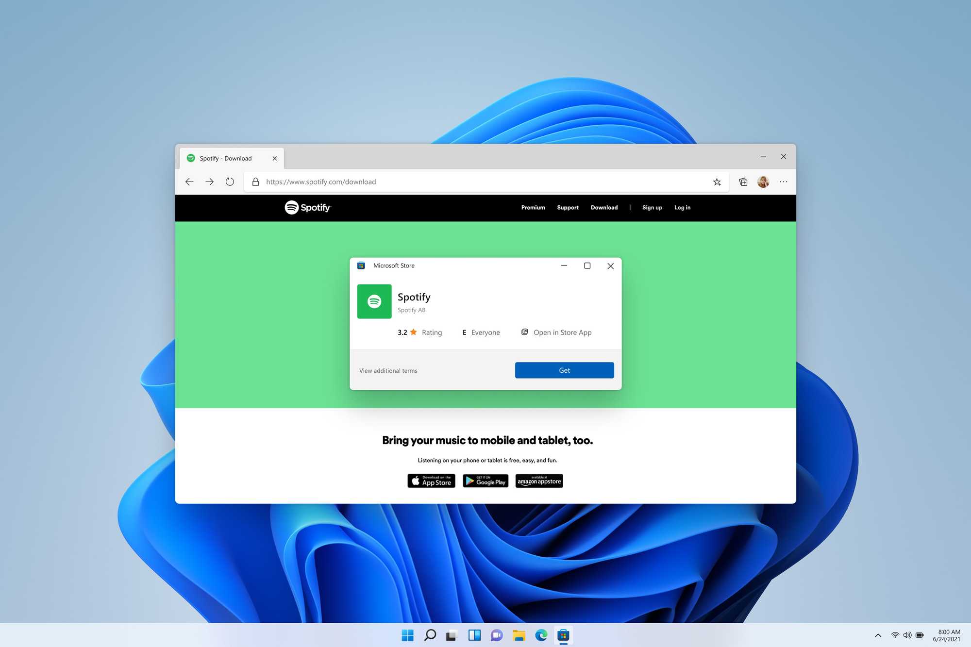 Ebenfalls Teil von Windows 11 sollen Android-Apps werden. Microsoft hat angekündigt, dass Android-Apps nativ – sprich ohne Emulator – auf Windows 11 laufen werden. Die Apps können installiert werden, so dass sie im Startmenü oder vom Desktop aus aufgerufen werden können. Dabei nutzt Microsoft laut eigenen Angaben die sogenannte Intel-Bridge-Technologie des Prozessorherstellers. Bezogen werden können die Apps über den Microsoft Store oder dank einer Partnerschaft mit Amazon über den Amazon Appstore.