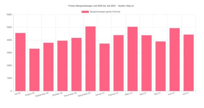 Das Sommerloch schlägt sich auch auf die Schweizer Unternehmenslandschaft nieder, wie einer Erhebung von Help.ch zu entnehmen ist. Das Wachstum nach Handelsregister sei zwar weiter stabil, im Sommer ist nun aber ein deutlicher Abwärtstrend zu verfolgen, der sich auch im August 2021 fortsetzen dürfte, wie es weiter heisst.