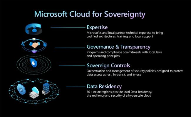 Microsofts Cloud for Sovereignty basiert auf dem Public-Cloud-Angebot des Unternehmens mit Microsoft 365, Dynamics, Power Platform und Azure und baut massgeblich auf die regionalen Azure-Rechenzentren. Es gebe aktuell über 60 davon, mehr als bei jedem anderen Public-Cloud-Anbieter. Darüber hinaus bietet die neue Lösung weitere Schichten, um sensitive Daten zu schützen und zu verschlüsseln. Dazu gehört die Technologie Azure Confidential Computing, mit der auf Basis spezieller Hardware mit isoliertem und verschlüsseltem Arbeitsspeicher vertrauenswürdige virtuelle Maschinen und vertrauenswürdige Container betrieben werden.